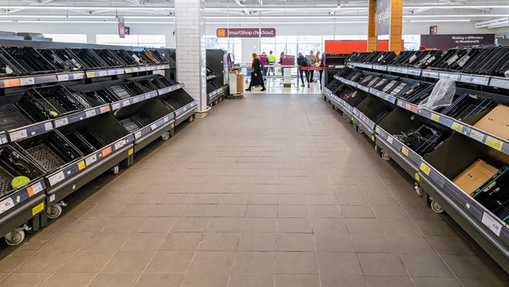 News of these disruptions causes shoppers to preemptively hoard, creating artificial shortages that then trigger very real, empty pantries.