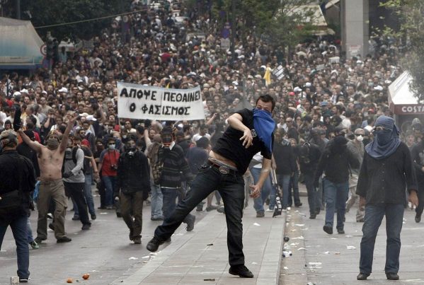 In fact, similar protests took place just days ago, as “anarchist protestors” perpetually angered by Greece’s creditors to stop spending money the government doesn’t have to subsidize the people lobbed rocks and gasoline bombs at police outside the country’s parliament.