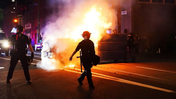 Over in Portland, approximately 150 rioters started fires and smashed things up following the Kyle Rittenhouse verdict. At one point, about a dozen police officers were forced back into a garage by an extremely unruly mob…