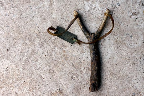- Slingshot – Slingshots are viewed as more of a toy than an actual weapon. But a big, sturdy one can double as a makeshift weapon in a pinch, especially if you use it with sharp, jagged rocks.